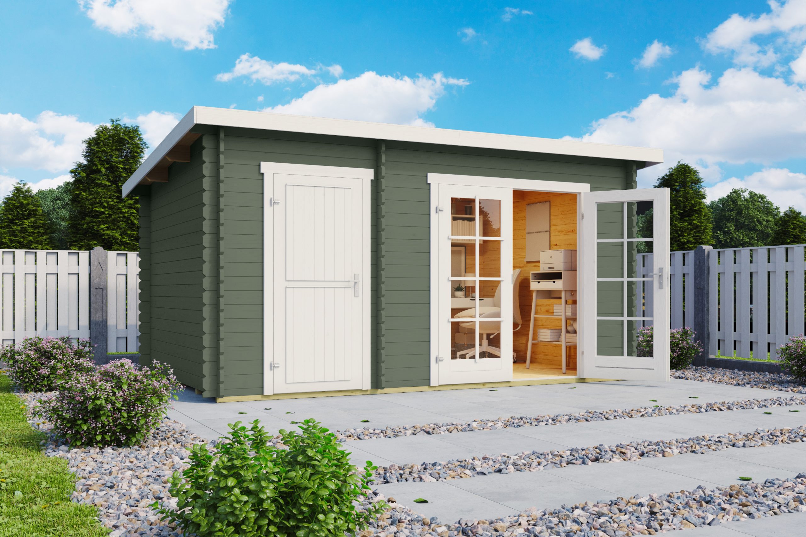 Belmont 1 je elegantna drvena kućica ravnog krova, suvremenog izgleda, namijenjena korisnicima koji žele čist, moderan dizajn uz visoku funkcionalnost. Prostrana unutrašnjost čini je idealnom za korištenje kao ured, hobi radionicu ili udoban vrtni studio. Velika staklena vrata i bočni prozori osiguravaju obilje prirodnog svjetla i osjećaj otvorenosti. Debeli drveni zidovi pružaju toplinsku izolaciju i dugotrajnu stabilnost, dok ravni krov s blagim nagibom čini montažu jednostavnom. Belmont 1 savršen je izbor za sve koji žele praktičan, ali estetski privlačan vrtni objekt koji se lako uklapa u suvremeno uređene prostore.