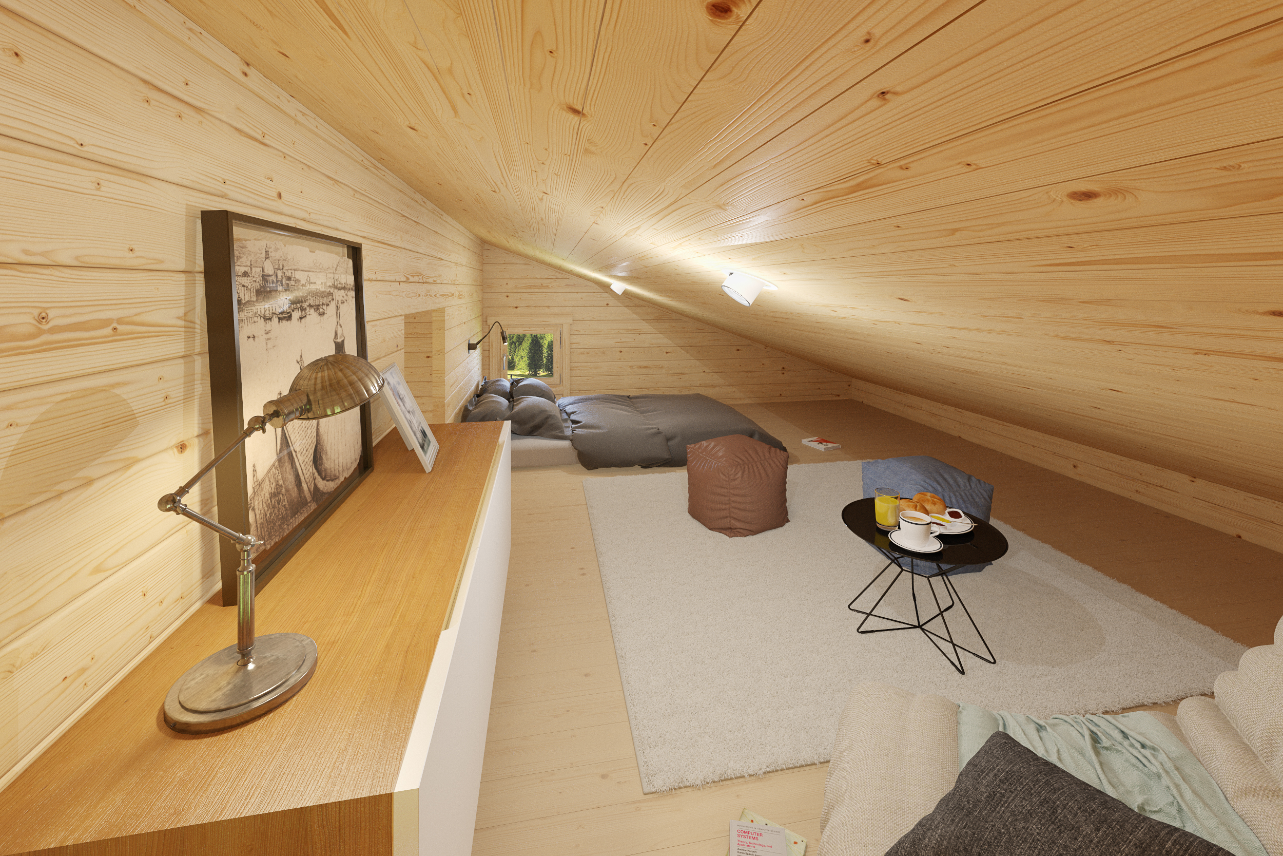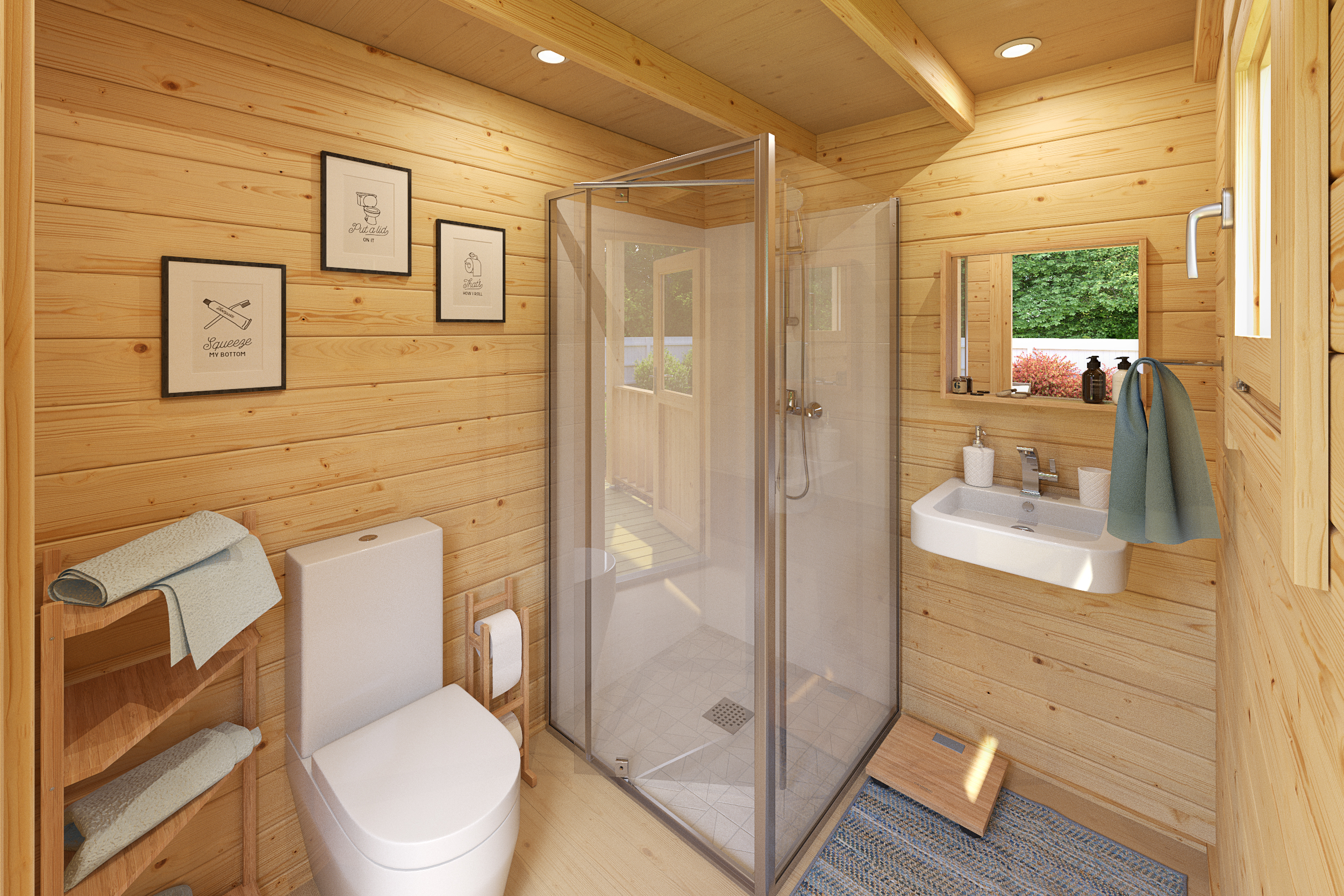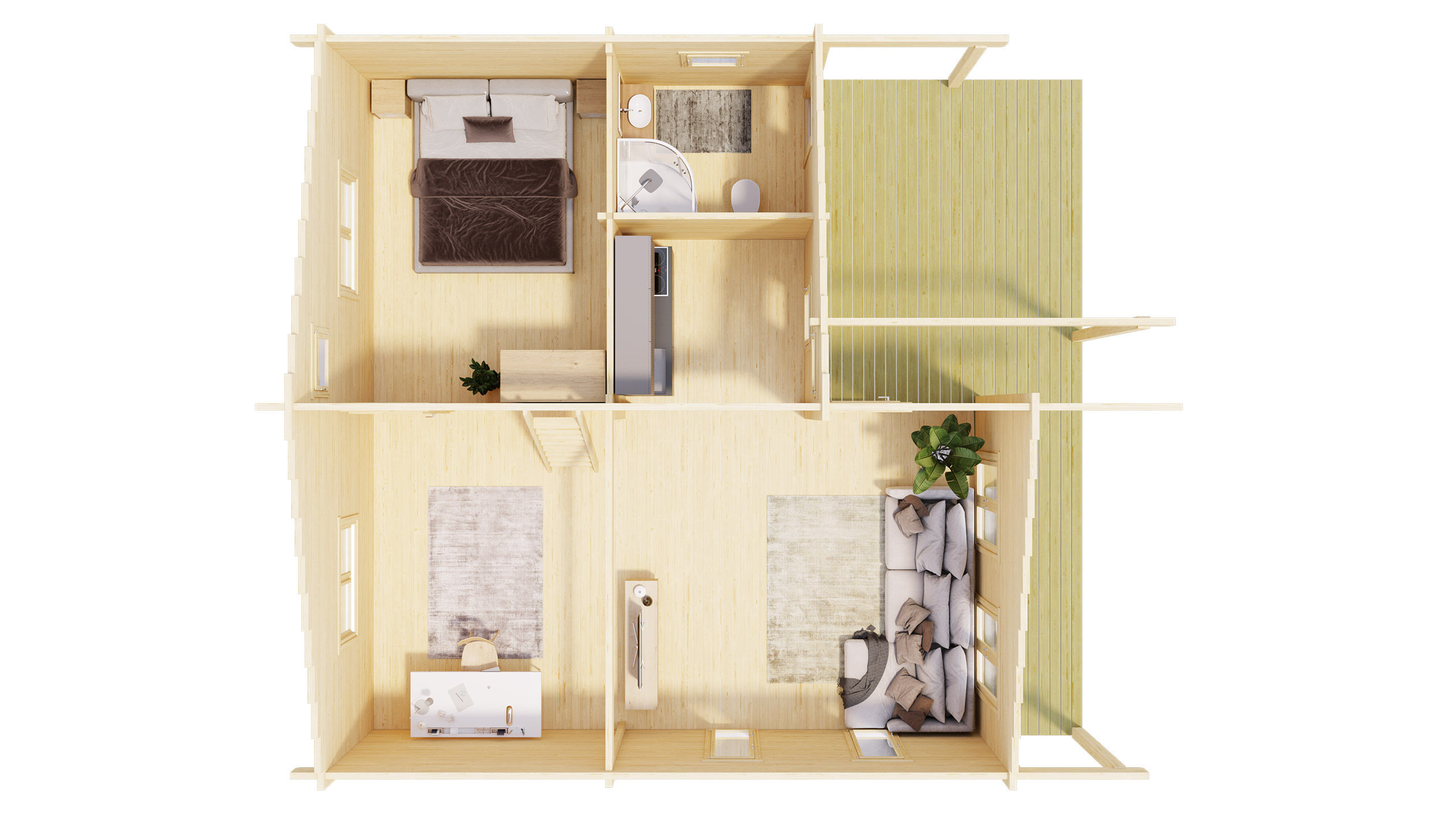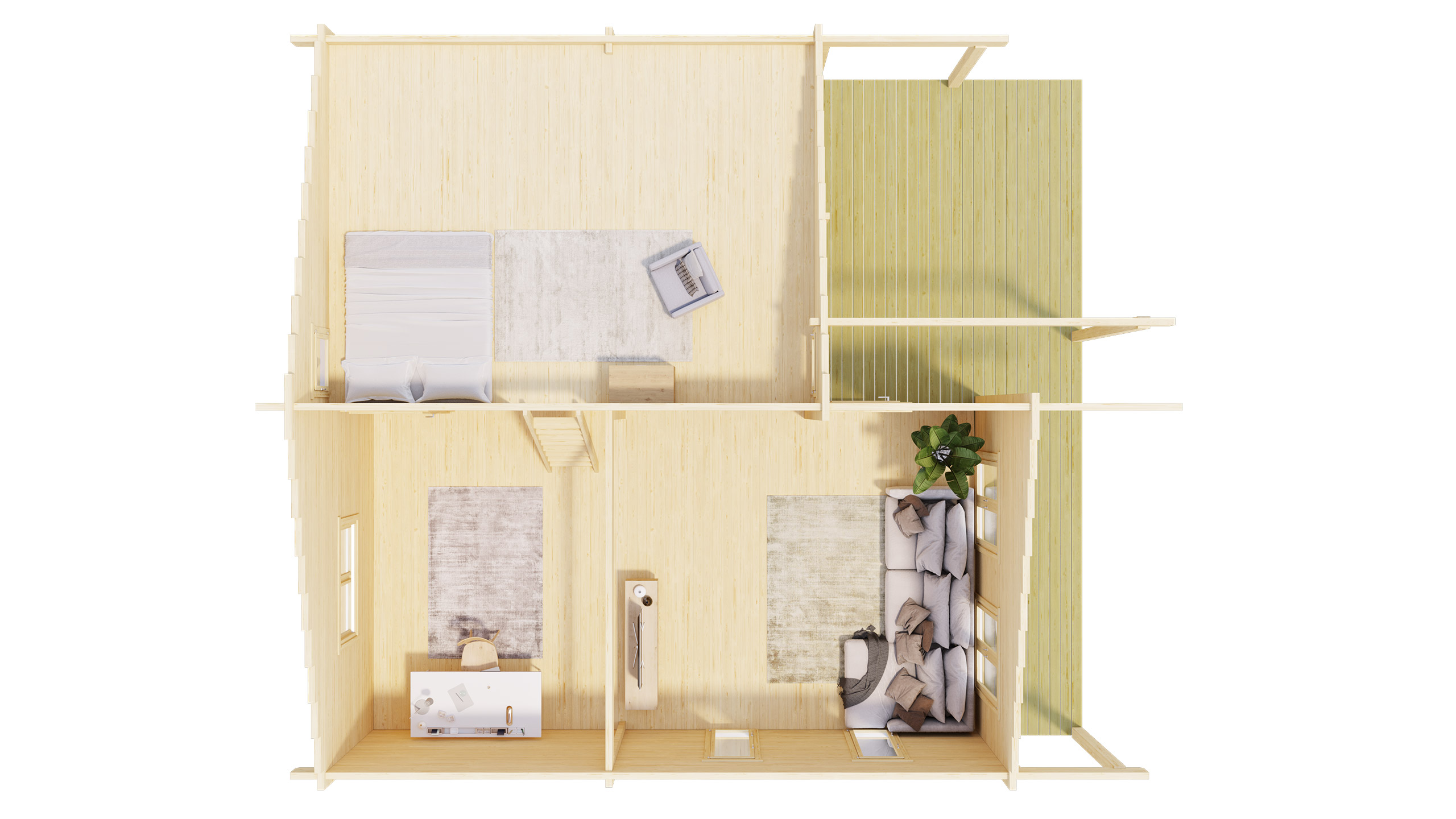 Ganges je velika i svestrana vikend kuća s terasom od preko 10 m² – savršena za obiteljski boravak u prirodi. Tri dvokrilna vrata i raznoliki raspored prozora pružaju odličnu ventilaciju i osvjetljenje. Izrađena od deblje nordijske smreke, s robusnom konstrukcijom. Ganges nudi savršen spoj udobnosti i prostora za cjelodnevna druženja na otvorenom.