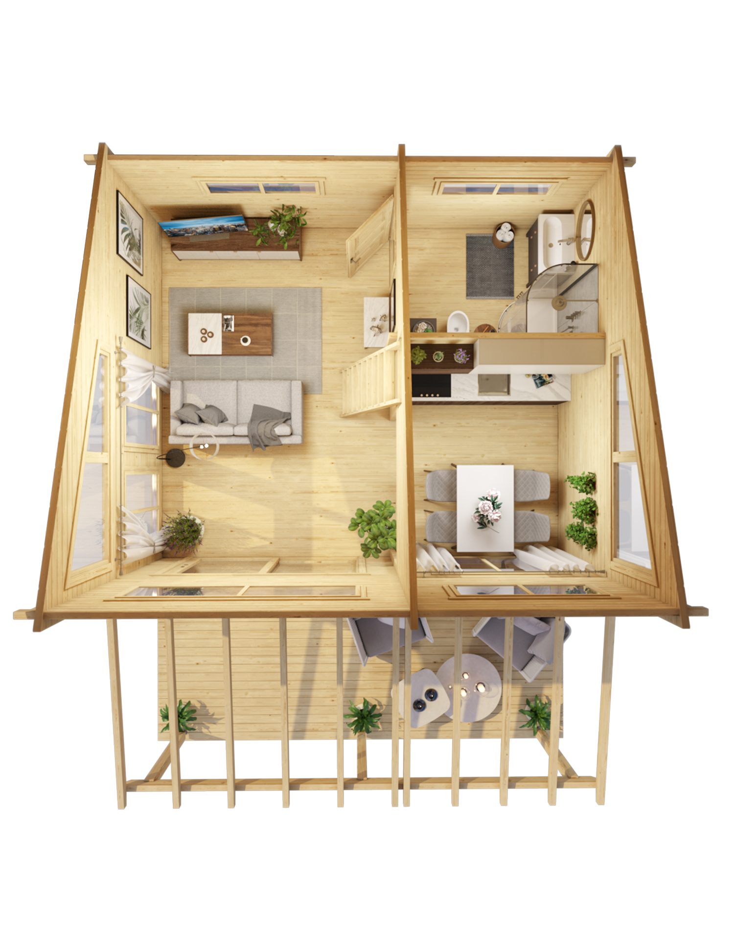 Malmö je elegantna vikend kućica modernog dizajna. Veliki prozori i prostrana dvokrilna vrata omogućuju obilje dnevnog svjetla, čineći interijer idealnim za opuštanje i druženje. Svojim dimenzijama nudi dovoljno prostora za uređenje vrtnog studija, radne zone ili dodatne sobe u vrtu. Ono što Malmö izdvaja je kvalitetna nordijska smreka debljine 70 mm, prostrani krovni prepust i robusna konstrukcija, garantirajući dugotrajnost i jednostavnu montažu. Idealan je izbor za sve koji žele ugodan prostor za vikend boravke i druženja u prirodi.